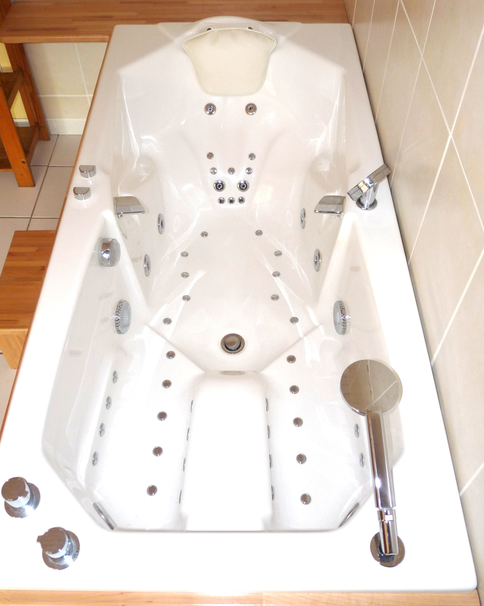 NOTA : Contrairement à un spa, pour la baignoire balnéo l’eau est renouvelée complètement à chaque utilisation ce qui garantit une hygiène irréprochable, il y a un système de désinfection automatique et séchage du circuit.
